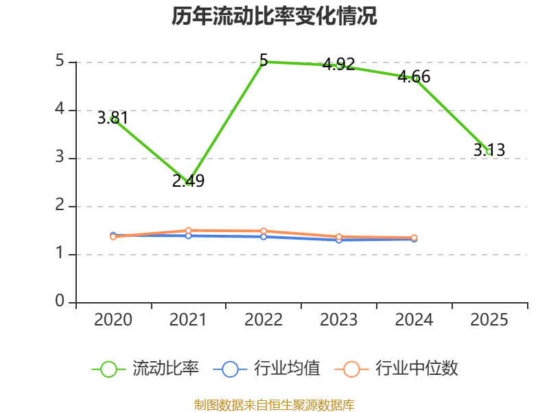 2025年,公司流动比率为3.13,速动比率为3.12。