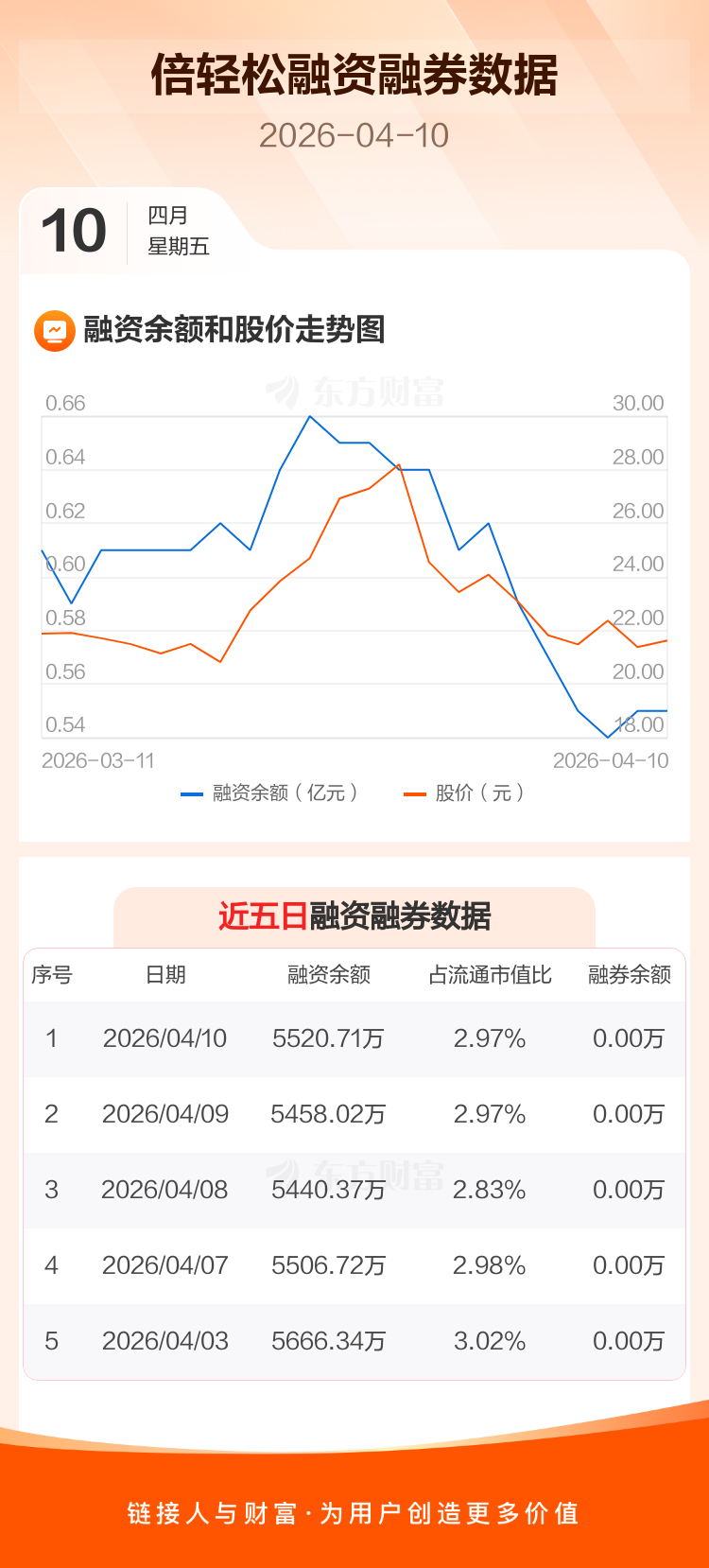 交易所最新数据显示,倍轻松于2026年4月10日获融资买入254.34万元,融资偿还191.64万元,当日融资净买入62.69万元。目前,该股融资余额5520.71万,占流通市值比例为2.97%。
