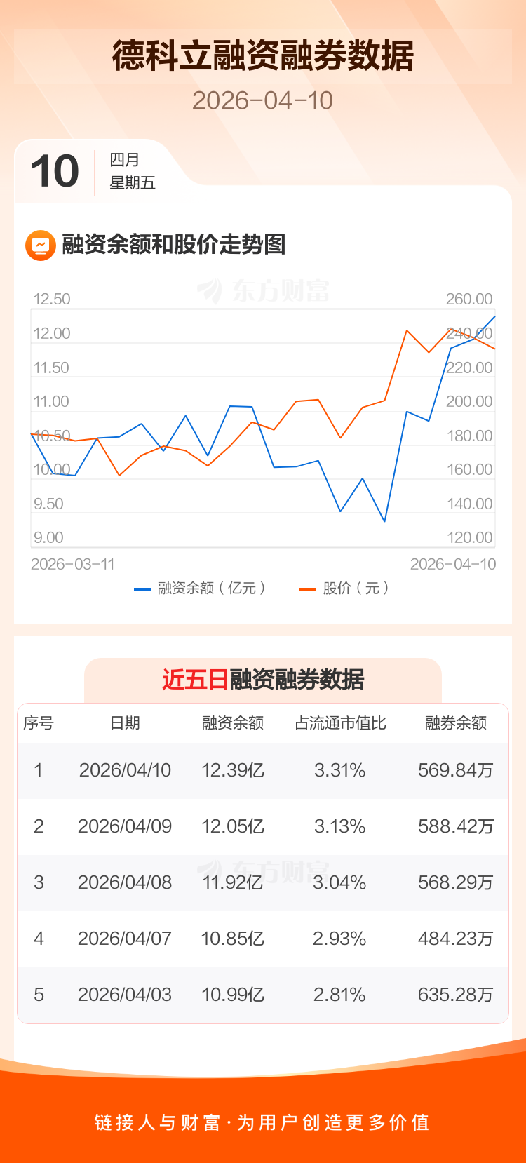交易所最新数据显示,德科立于2026年4月10日获融资买入4.26亿元,融资偿还3.91亿元,当日融资净买入3455.92万元。目前,该股融资余额12.39亿,占流通市值比例为3.31%。