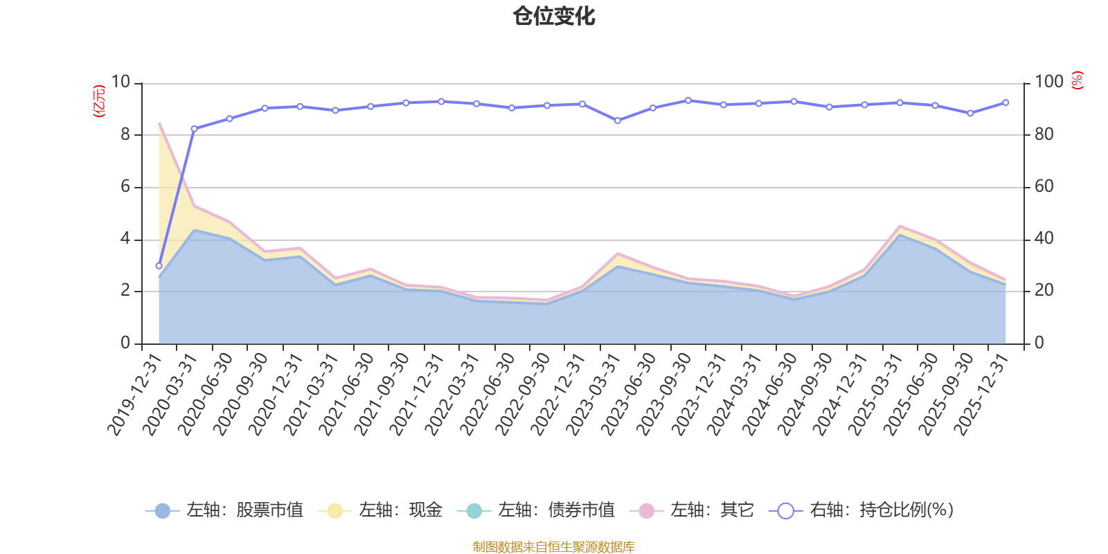 据定期报告数据统计,近三年平均股票仓位为91.15%,同类平均为88.36%。2023年三季度末基金达到93.36%的最高仓位,2019年末最低,为29.93%。
