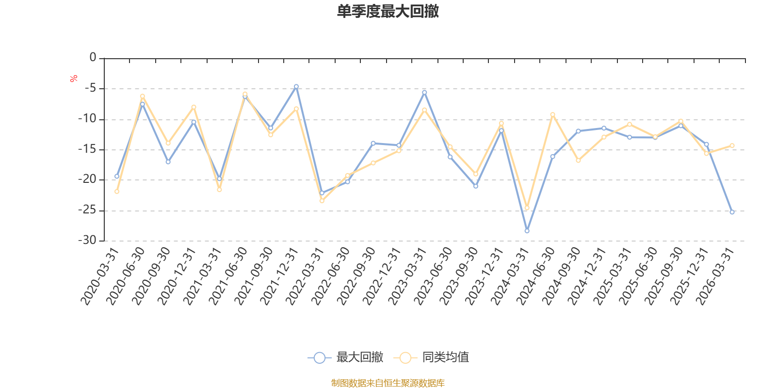 通过所选区间该基金净值增长率分位图,可以观察该基金与同类基金业绩比较情况。图为坐标原点到区间内某时点的净值增长率在同类基金中的分位数。
