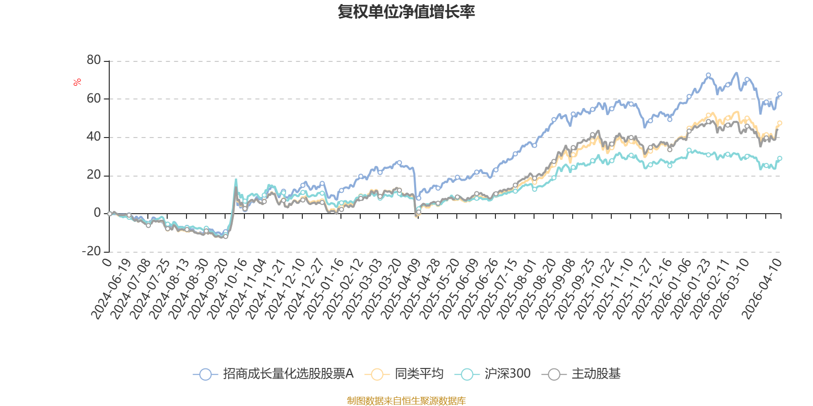 截至4月10日,招商成长量化选股股票A近三个月复权单位净值增长率为-0.93%,位于同类可比基金90/167;近半年复权单位净值增长率为3.30%,位于同类可比基金98/167;近一年复权单位净值增长率为46.08%,位于同类可比基金68/165。