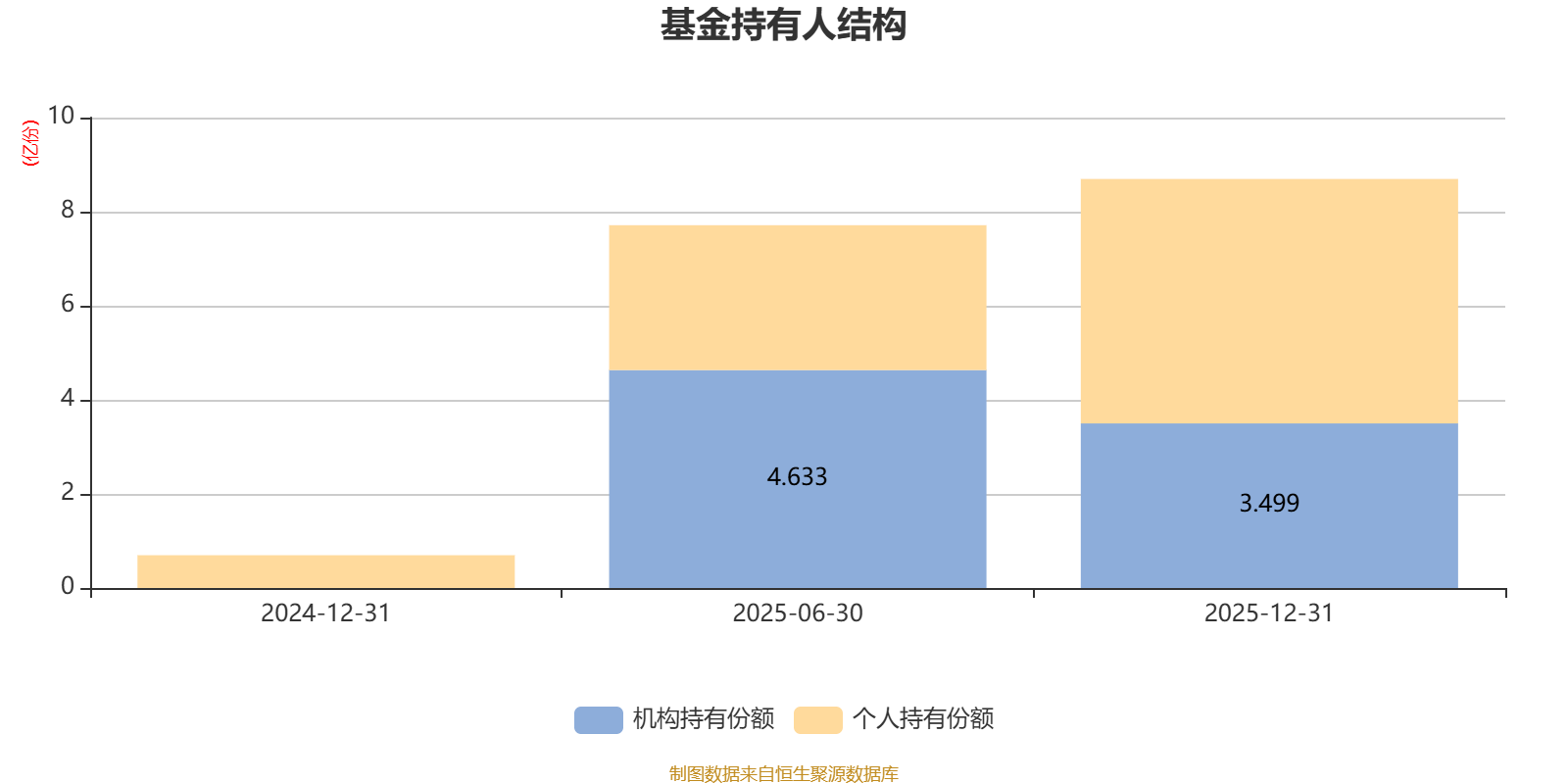 截至2025年12月31日,基金持有人共计4.14万户,合计持有8.7亿份。其中管理人员工持有367.41万份,占比0.42%,机构持有份额占比40.24%,个人投资者占比59.76%。