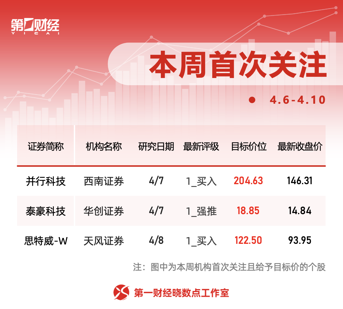 -并行科技获西南证券“买入”评级,被给予目标价204.63元,该股最新收盘价为146.31元;