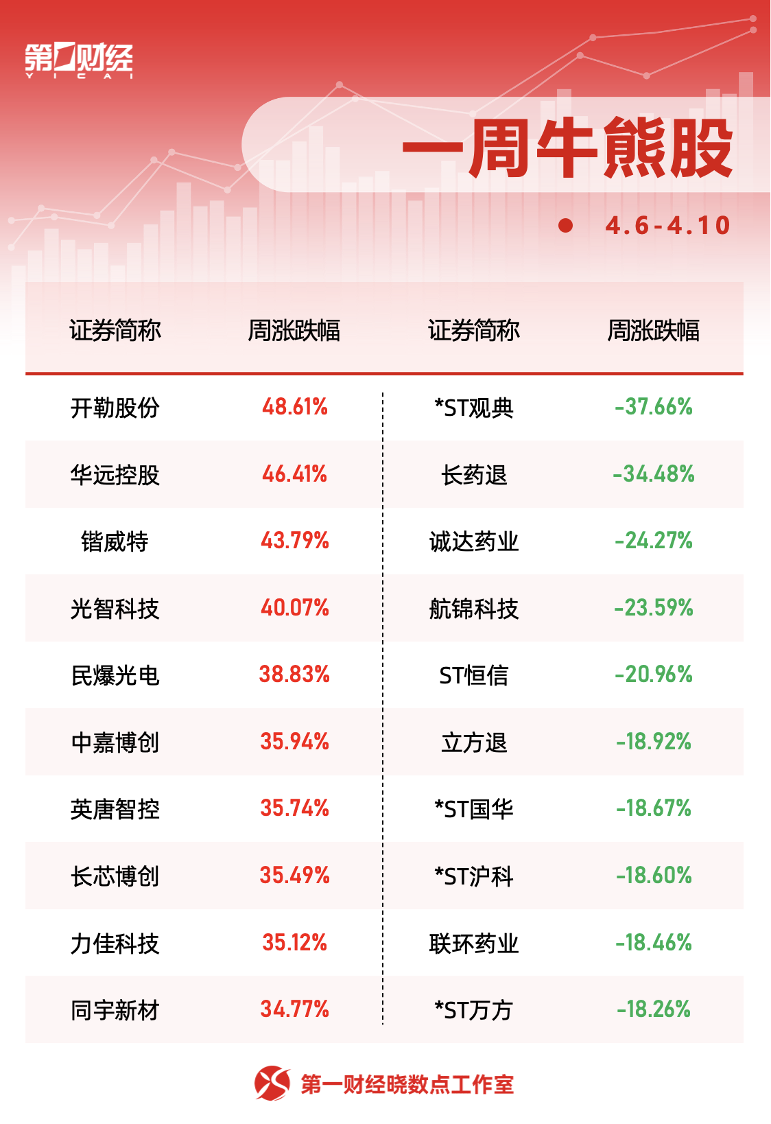 本周共有13只个股涨幅30%。涨幅最大的是开勒股份,本周累计上涨48.61%;此外,华远控股、锴威特、光智科技本周累计涨幅均超40%。