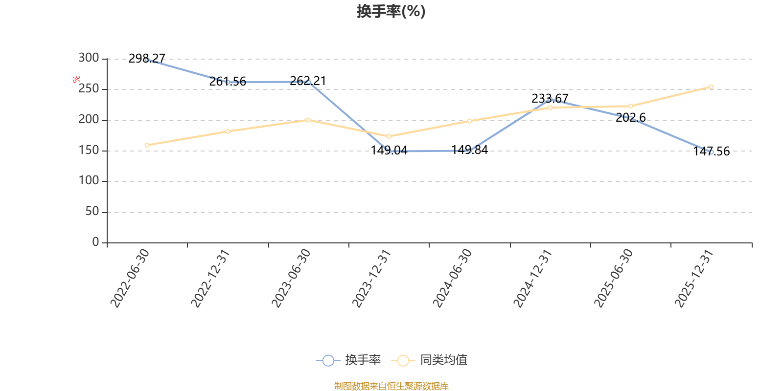截至2025年12月31日,基金最近一年换手率约344.2%,持续1年低于同类均值。