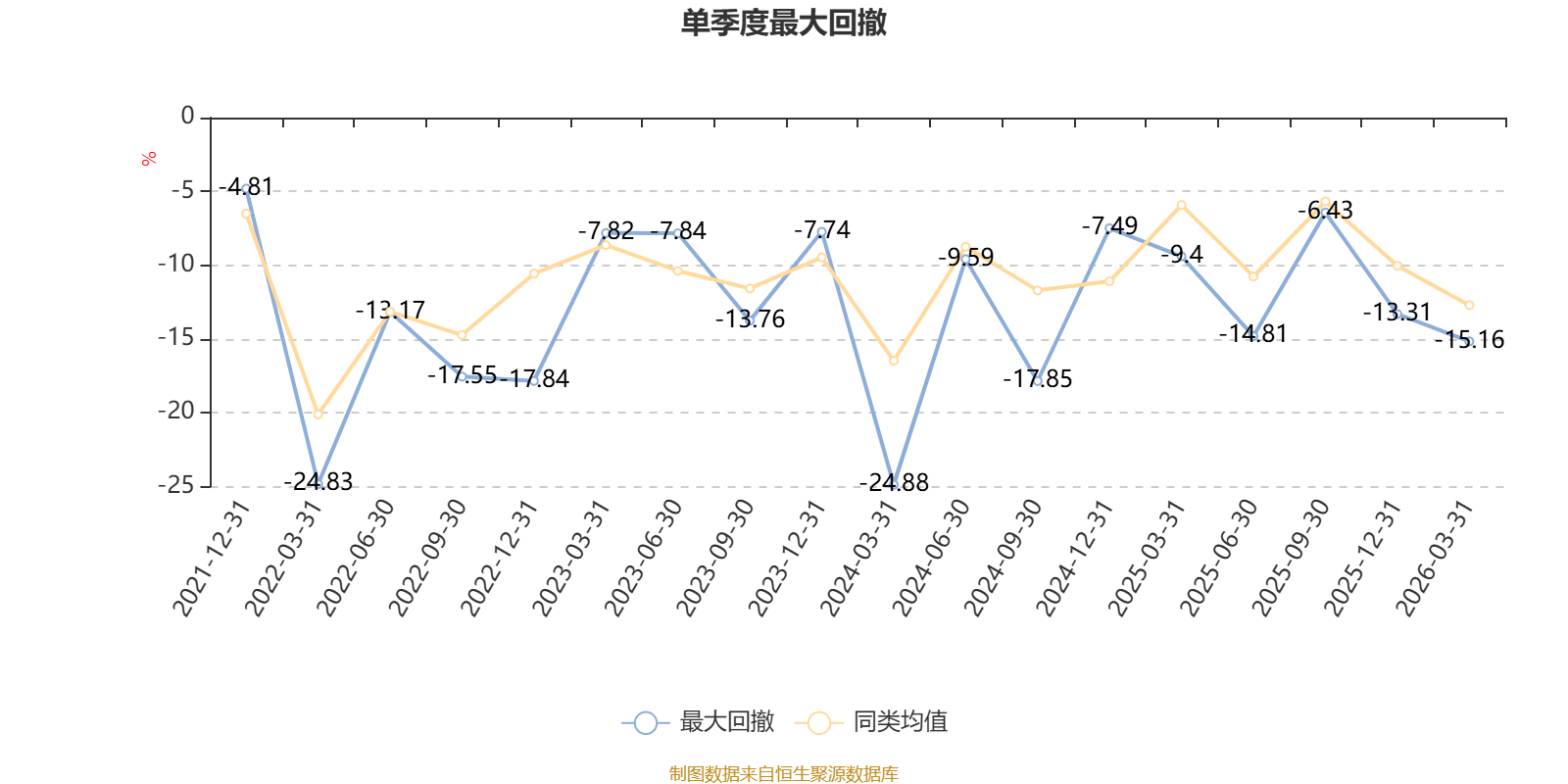 截至4月10日,基金近三年最大回撤为37.54%,同类可比基金排名407/555。单季度最大回撤出现在2024年一季度,为24.88%。