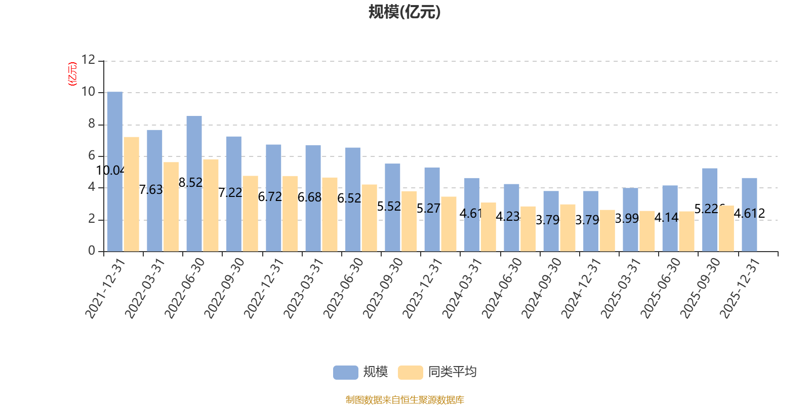 截至2025年12月31日,基金持有人共计4582户,合计持有4.61亿份。其中管理人员工持有99.29万份,占比0.22%,机构持有份额占比0.00%,个人投资者占比100.00%。