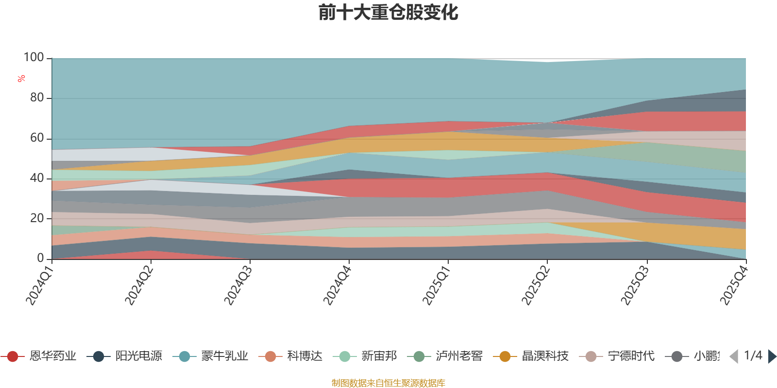 该基金持股集中度较高。截至2025年末,基金十大重仓股分别是晶科能源、弘元绿能、晶澳科技、天合光能、协鑫科技、信义光能、通威股份、福莱特玻璃、蒙牛乳业、小鹏集团-W。