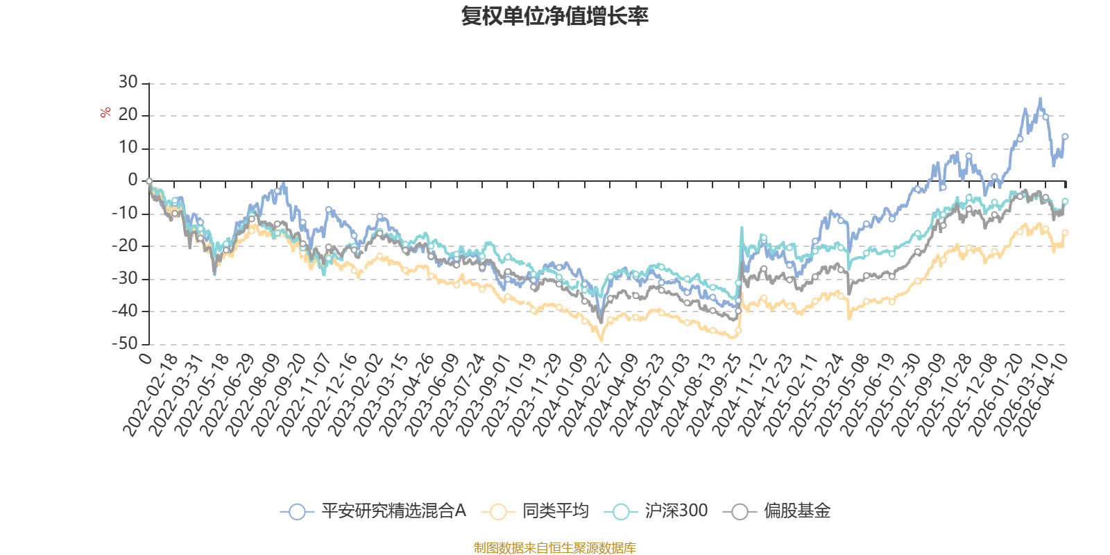 截至4月10日,平安研究精选混合A近三个月复权单位净值增长率为2.25%,位于同类可比基金227/689;近半年复权单位净值增长率为7.65%,位于同类可比基金265/689;近一年复权单位净值增长率为38.74%,位于同类可比基金319/685;近三年复权单位净值增长率为42.34%,位于同类可比基金75/417。