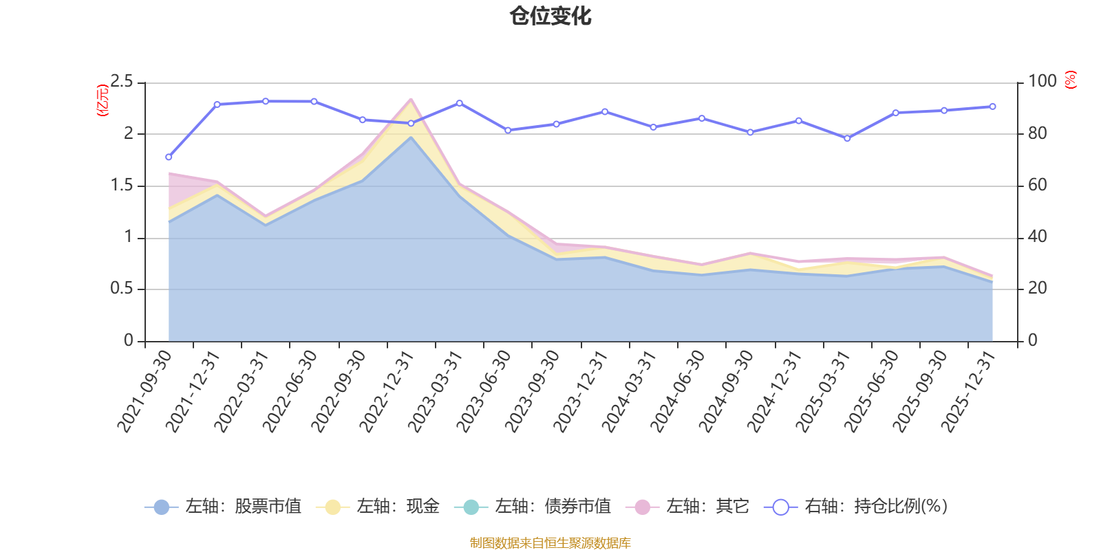 据定期报告数据统计,近三年平均股票仓位为85.65%,同类平均为84.04%。2022年一季度末基金达到92.77%的最高仓位,2021年三季度末最低,为71.22%。
