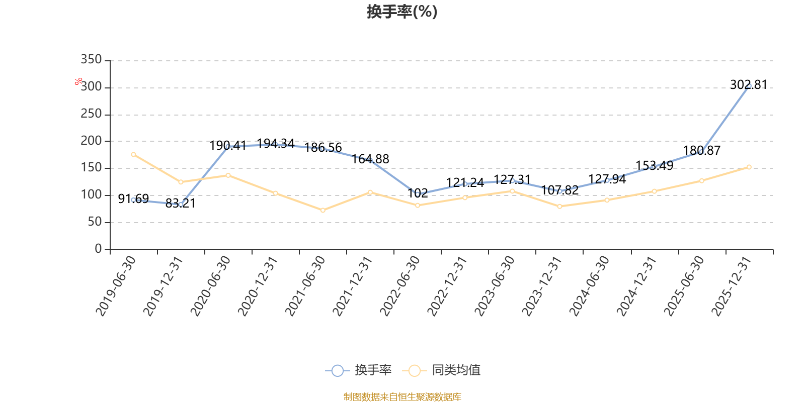 截至2025年12月31日,基金最近一年换手率约473.77%,持续6年高于同类均值。