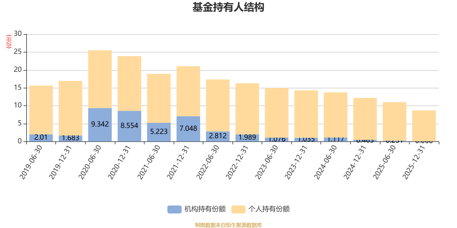 截至2025年12月31日,基金持有人共计24.09万户,合计持有8.71亿份。其中管理人员工持有133.69万份,占比0.15%,机构持有份额占比0.79%,个人投资者占比99.21%。