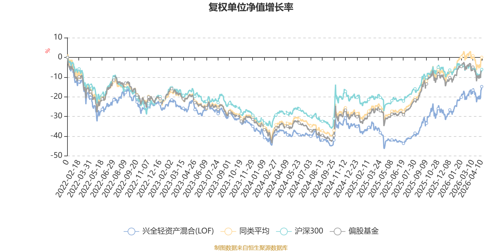 截至4月10日,兴全轻资产混合(LOF)近三个月复权单位净值增长率为8.69%,位于同类可比基金11/130;近半年复权单位净值增长率为16.57%,位于同类可比基金15/130;近一年复权单位净值增长率为53.20%,位于同类可比基金35/130;近三年复权单位净值增长率为10.46%,位于同类可比基金84/126。