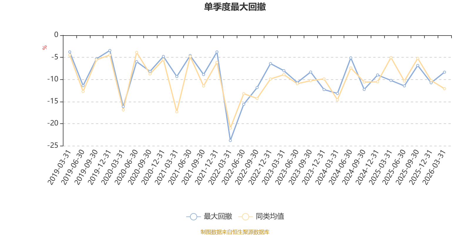 截至4月10日,基金近三年最大回撤为31.88%,同类可比基金排名63/126。单季度最大回撤出现在2022年一季度,为23.79%。
