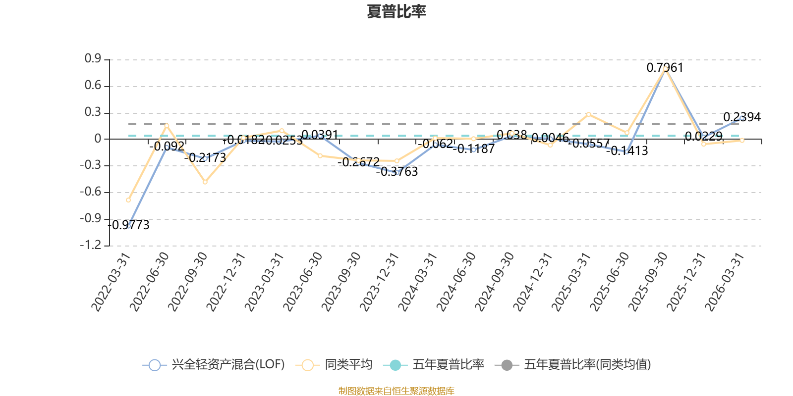 截至3月31日,基金近三年夏普比率为0.3433,位于同类可比基金96/126。