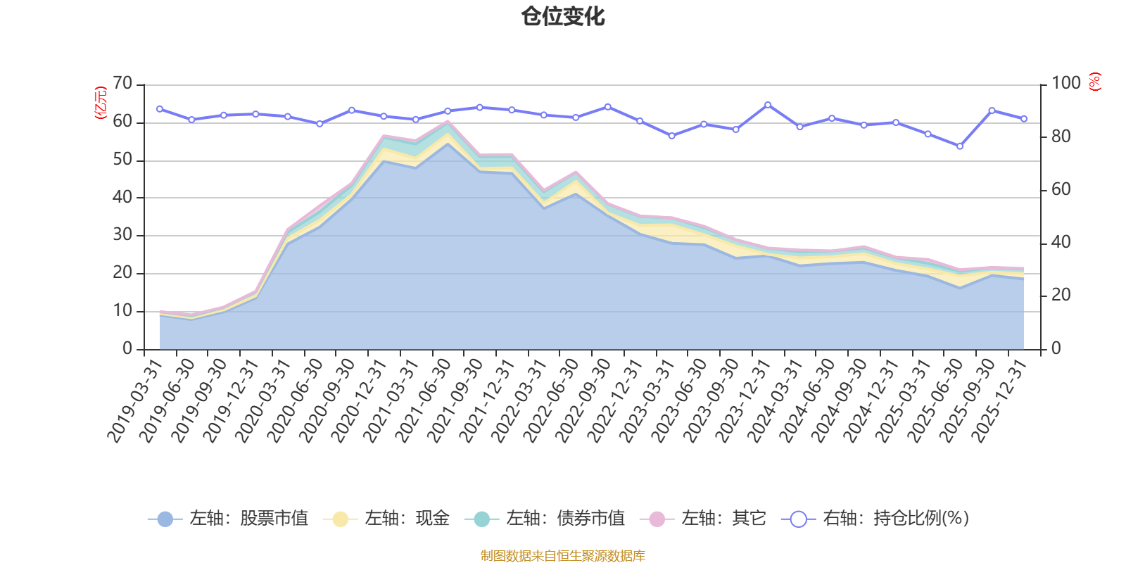 据定期报告数据统计,近三年平均股票仓位为84.81%,同类平均为86.17%。2023年末基金达到92.3%的最高仓位,2025年上半年末最低,为76.7%。