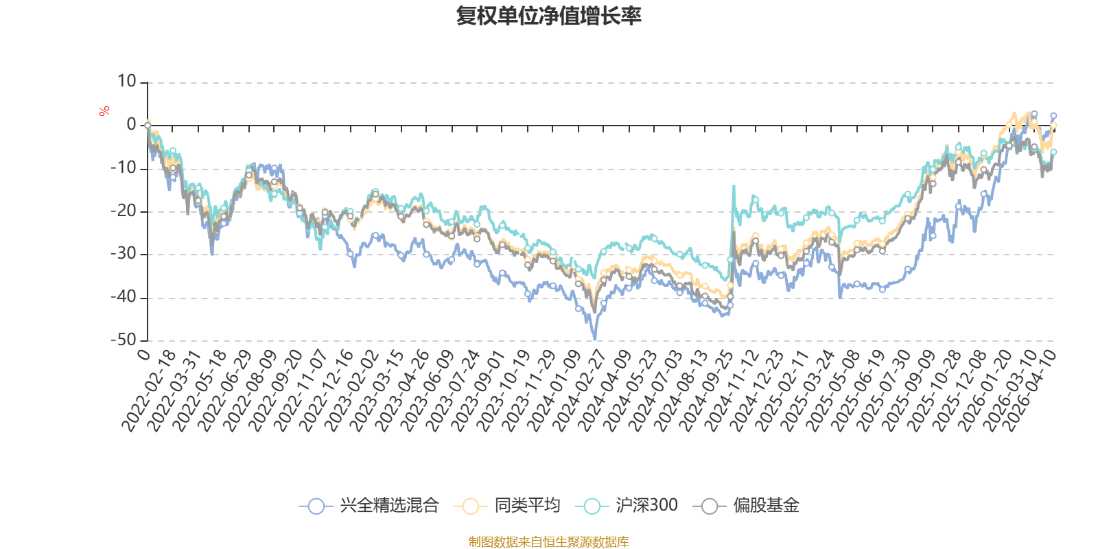 截至4月10日,兴全精选混合近三个月复权单位净值增长率为12.66%,位于同类可比基金7/130;近半年复权单位净值增长率为34.29%,位于同类可比基金1/130;近一年复权单位净值增长率为63.71%,位于同类可比基金24/130;近三年复权单位净值增长率为40.27%,位于同类可比基金25/126。