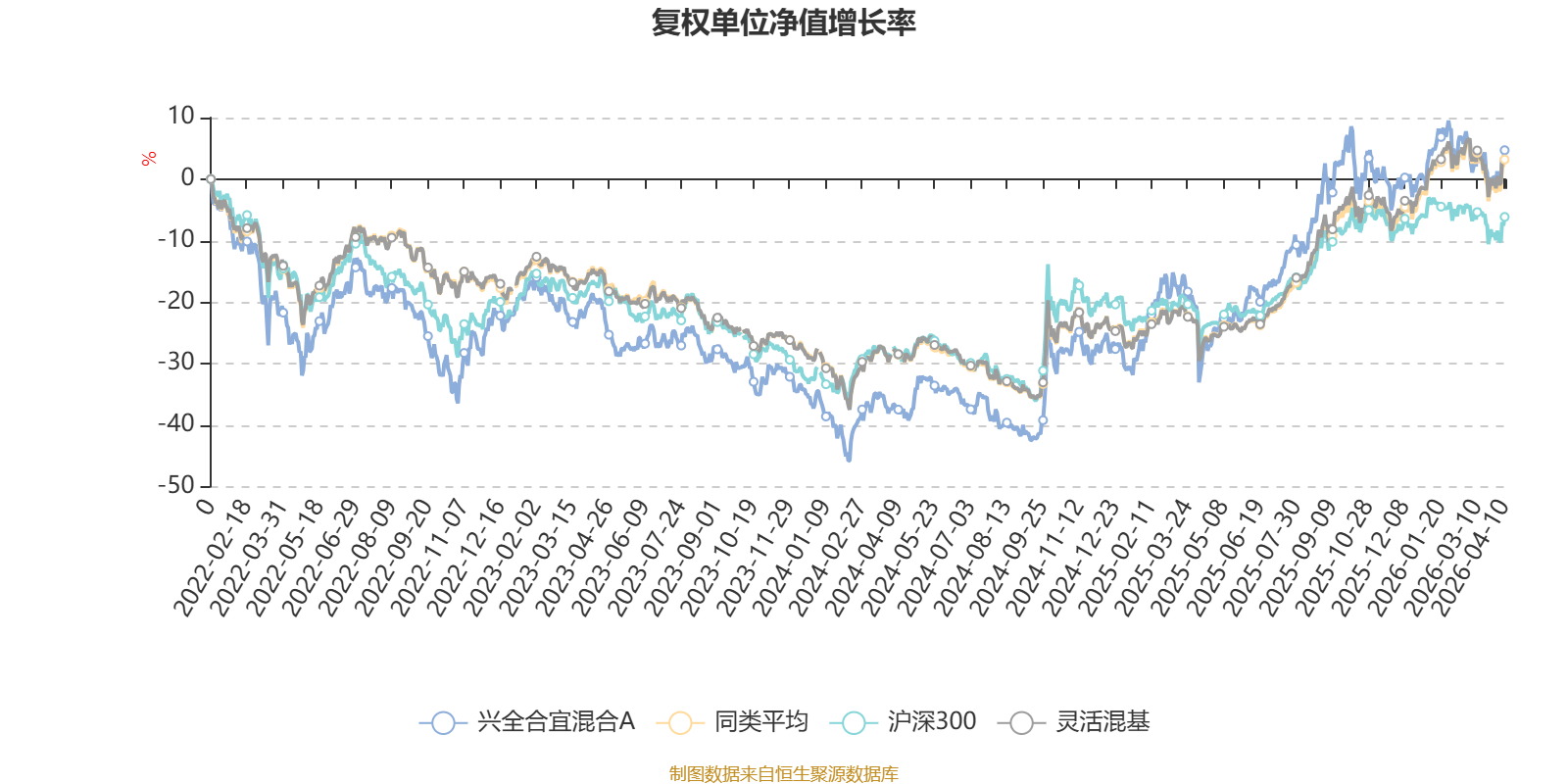 截至4月10日,兴全合宜混合A近三个月复权单位净值增长率为0.15%,位于同类可比基金644/1287;近半年复权单位净值增长率为0.93%,位于同类可比基金905/1286;近一年复权单位净值增长率为46.45%,位于同类可比基金396/1286;近三年复权单位净值增长率为30.11%,位于同类可比基金373/1286。