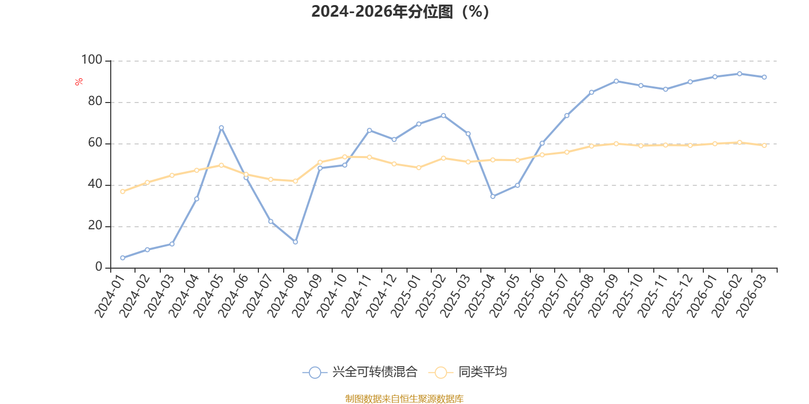 通过所选区间该基金净值增长率分位图,可以观察该基金与同类基金业绩比较情况。图为坐标原点到区间内某时点的净值增长率在同类基金中的分位数。