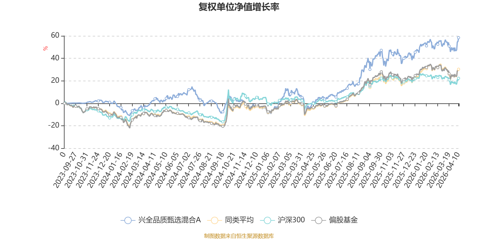 截至4月10日,兴全品质甄选混合A近三个月复权单位净值增长率为4.51%,位于同类可比基金162/689;近半年复权单位净值增长率为12.06%,位于同类可比基金167/689;近一年复权单位净值增长率为67.26%,位于同类可比基金98/685。