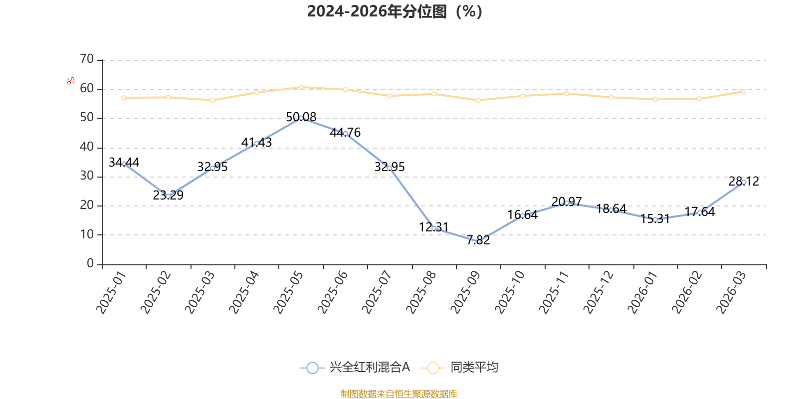 通过所选区间该基金净值增长率分位图,可以观察该基金与同类基金业绩比较情况。图为坐标原点到区间内某时点的净值增长率在同类基金中的分位数。