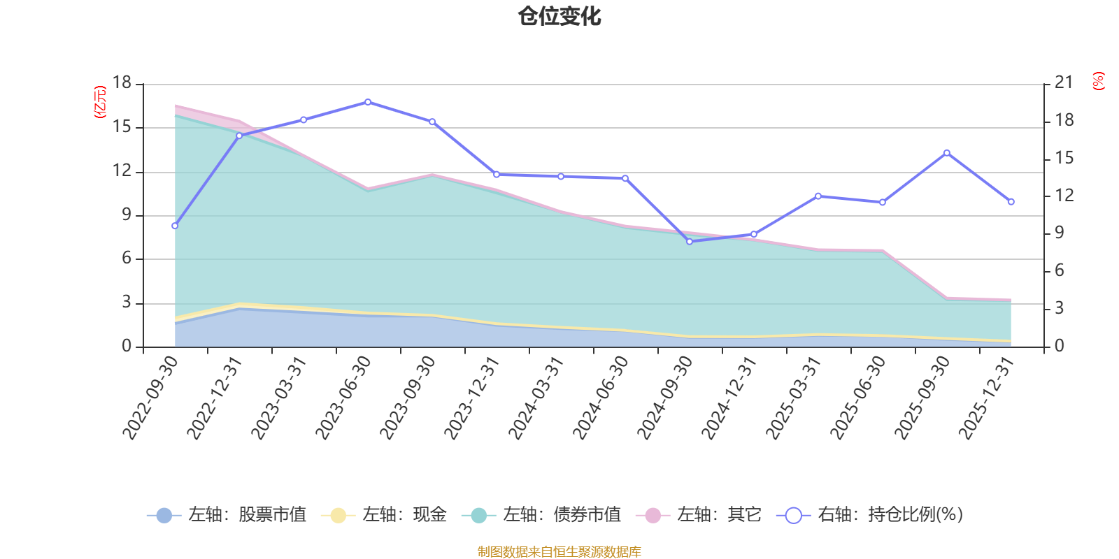 据定期报告数据统计,近三年平均股票仓位为13.72%,同类平均为67.52%。2023年上半年末基金达到19.55%的最高仓位,2024年三季度末最低,为8.41%。
