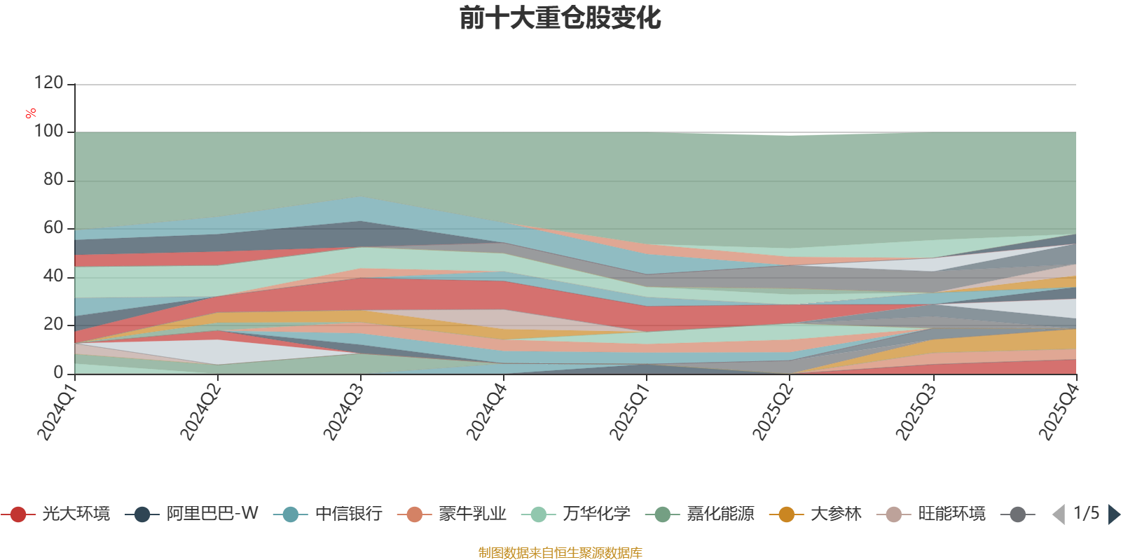 该基金持股集中度较高。截至2025年末,基金十大重仓股分别是美的集团、大参林、唐山港、光大环境、天山铝业、伊利股份、中国石油化工股份、蒙牛乳业、中孚实业、华鲁恒升。