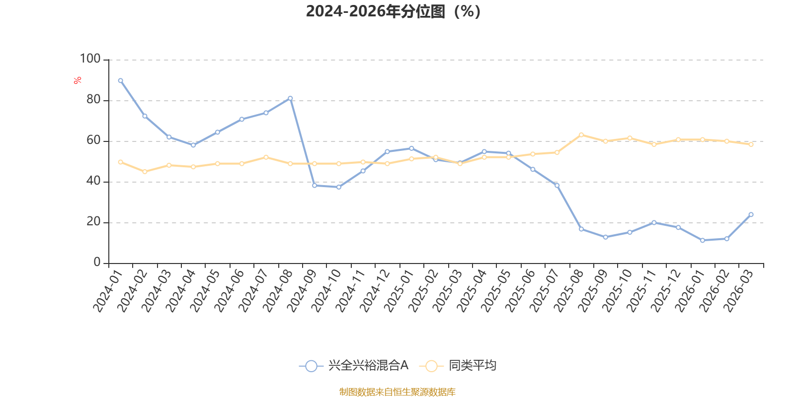 通过所选区间该基金净值增长率分位图,可以观察该基金与同类基金业绩比较情况。图为坐标原点到区间内某时点的净值增长率在同类基金中的分位数。