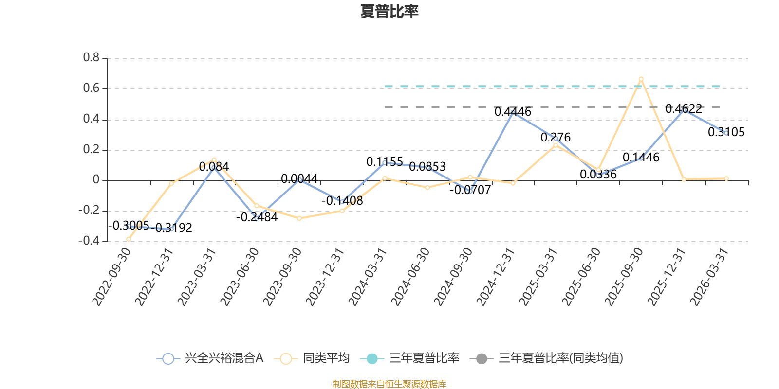截至3月31日,基金近三年夏普比率为0.6178,位于同类可比基金41/124。