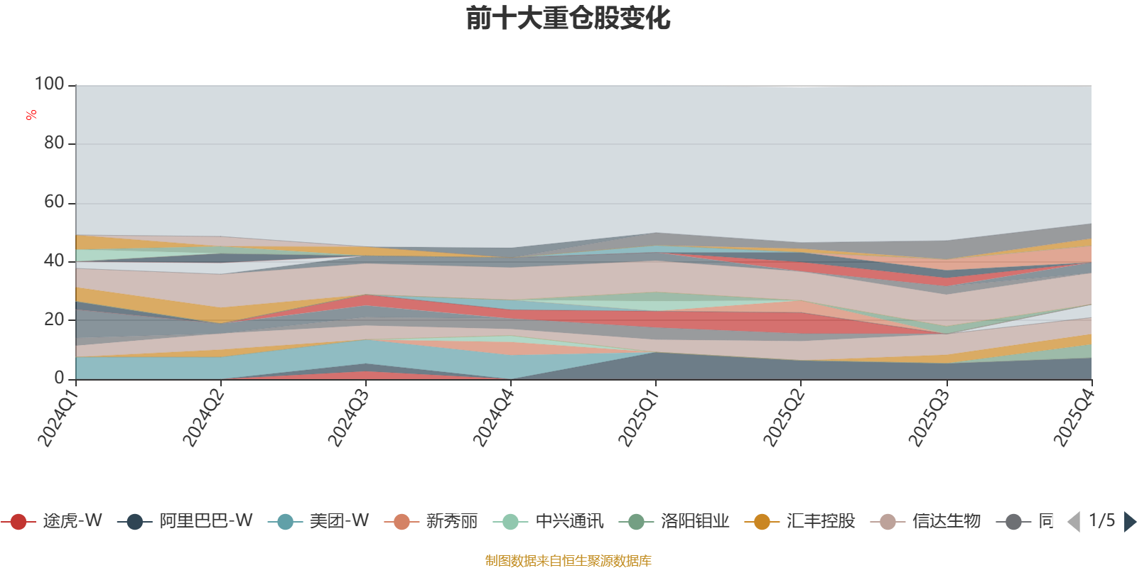截至2025年末,基金十大重仓股分别是腾讯控股、阿里巴巴-W、中际旭创、信达生物、中芯国际、洛阳钼业、极兔速递-W、高伟电子、汇丰控股、紫金矿业。