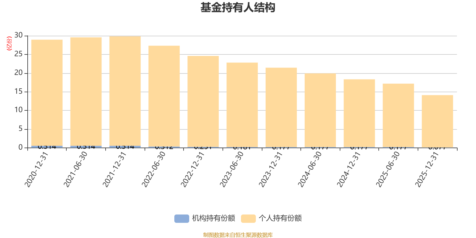 截至2025年12月31日,基金持有人共计2.99万户,合计持有14.09亿份。其中管理人员工持有647.33万份,占比0.46%,机构持有份额占比0.55%,个人投资者占比99.45%。