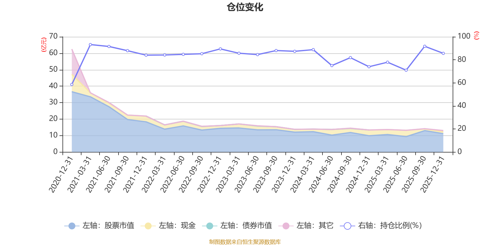 据定期报告数据统计,近三年平均股票仓位为82.64%,同类平均为87.64%。2021年一季度末基金达到93.2%的最高仓位,2020年末最低,为58.6%。