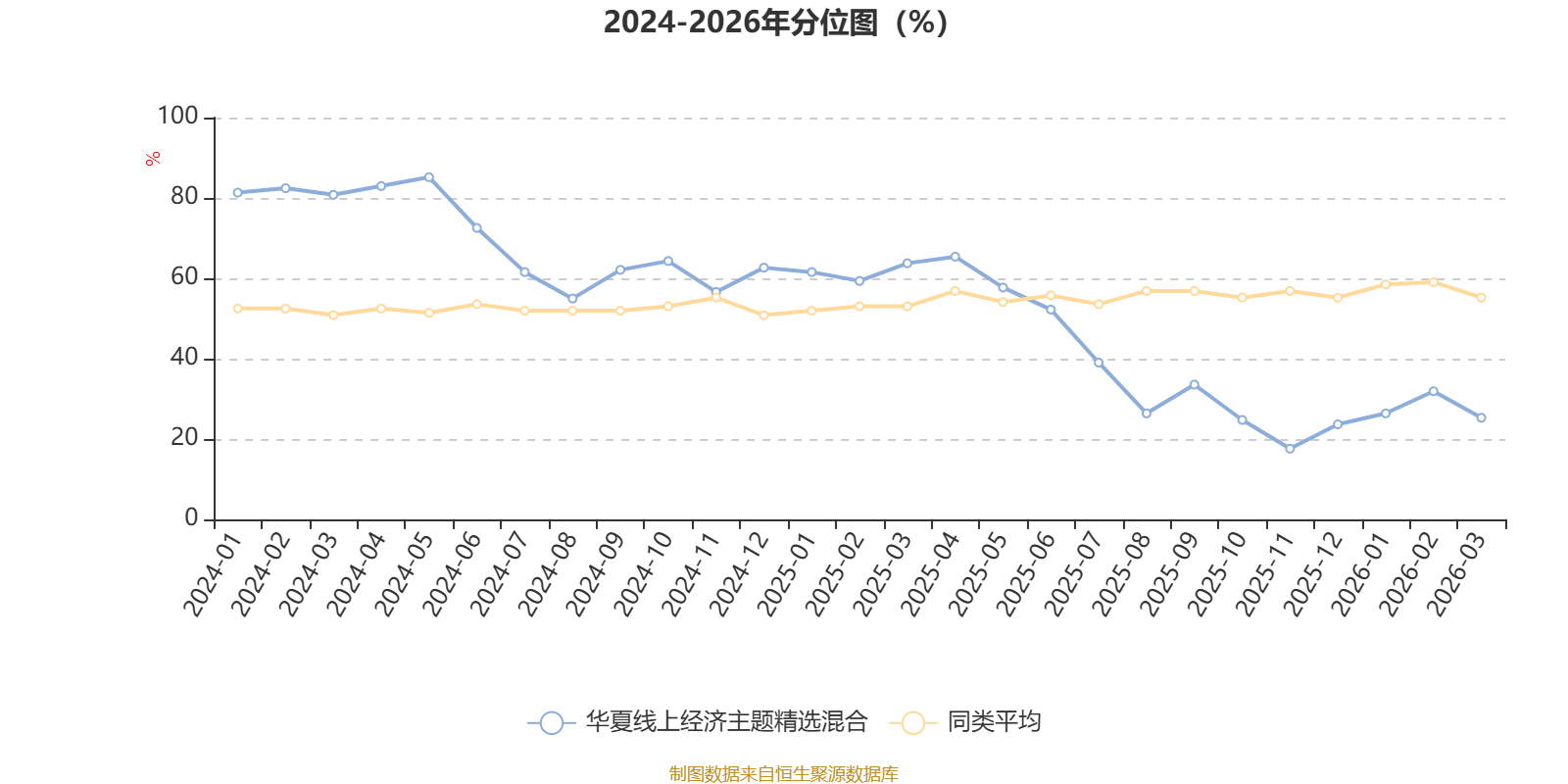 通过所选区间该基金净值增长率分位图,可以观察该基金与同类基金业绩比较情况。图为坐标原点到区间内某时点的净值增长率在同类基金中的分位数。