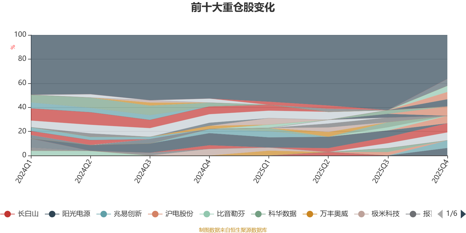 截至2025年末,基金十大重仓股分别是东方电气、宁德时代、寒武纪、兆易创新、阳光电源、思源电气、立讯精密、北方华创、海光信息、中际旭创。
