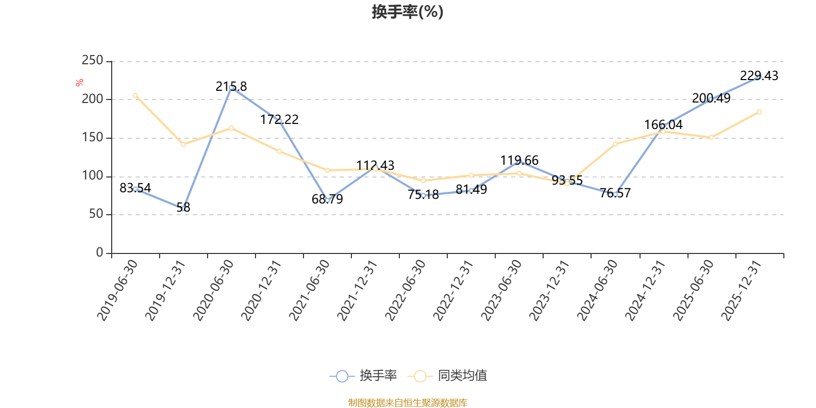 截至2025年12月31日,基金最近一年换手率约428.76%,持续1年高于同类均值。