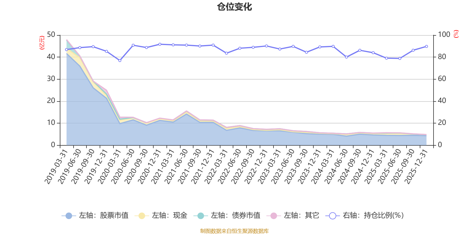据定期报告数据统计,近三年平均股票仓位为85.4%,同类平均为87.26%。2020年末基金达到91.7%的最高仓位,2020年一季度末最低,为76.91%。