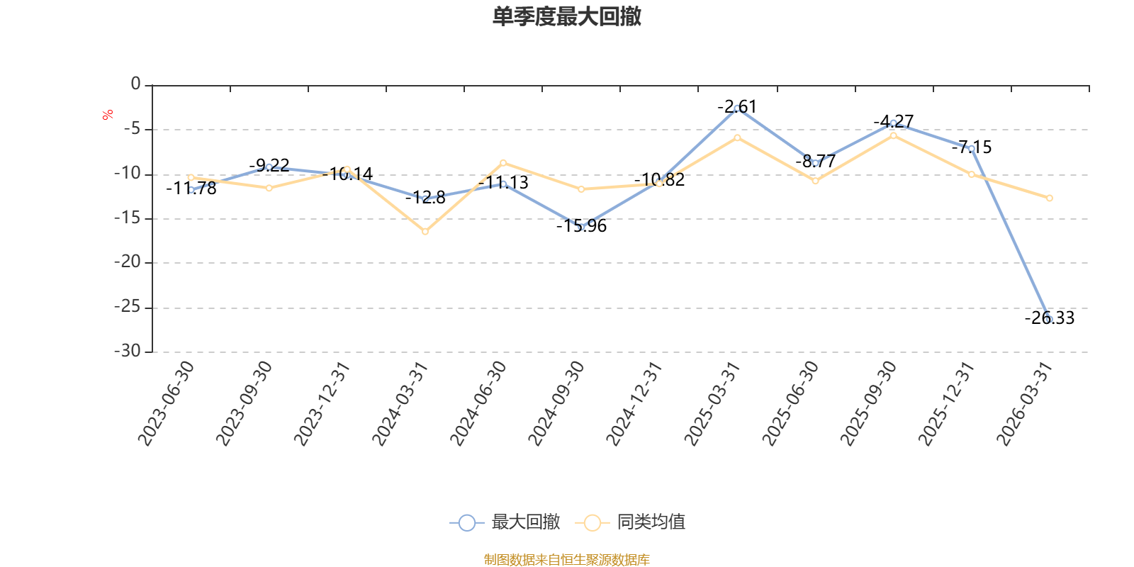 截至4月10日,基金近三年最大回撤为30.19%,同类可比基金排名208/555。单季度最大回撤出现在2026年一季度,为26.33%。