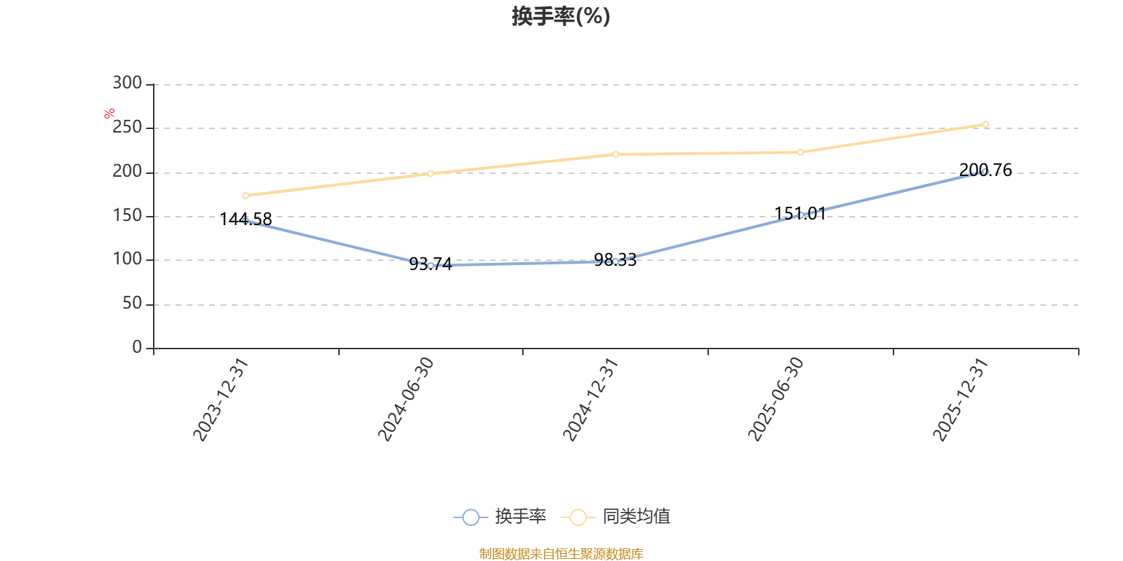 截至2025年12月31日,基金最近一年换手率约354.3%,持续低于同类均值。