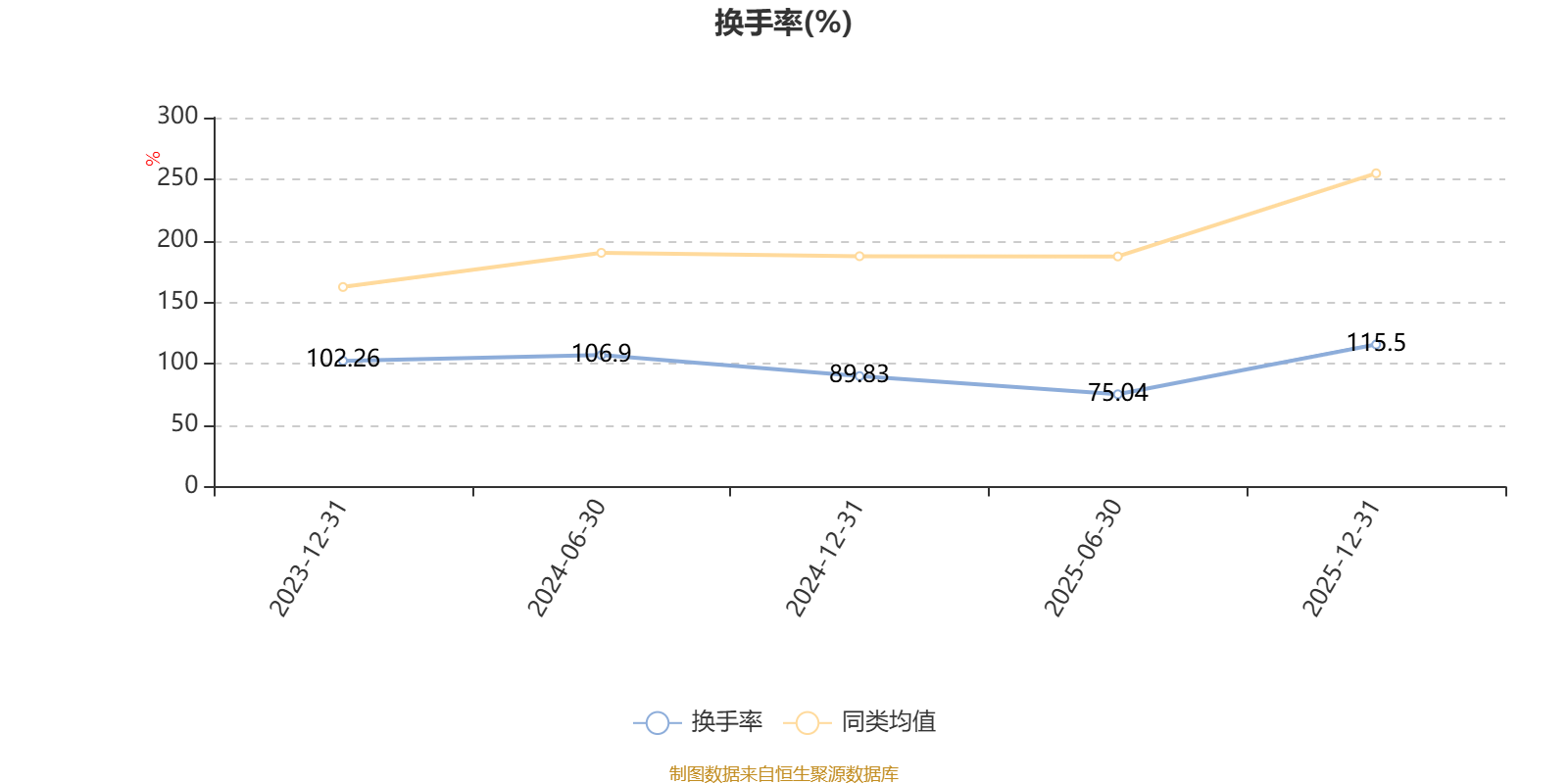 截至2025年12月31日,基金最近一年换手率约183.54%,持续低于同类均值。