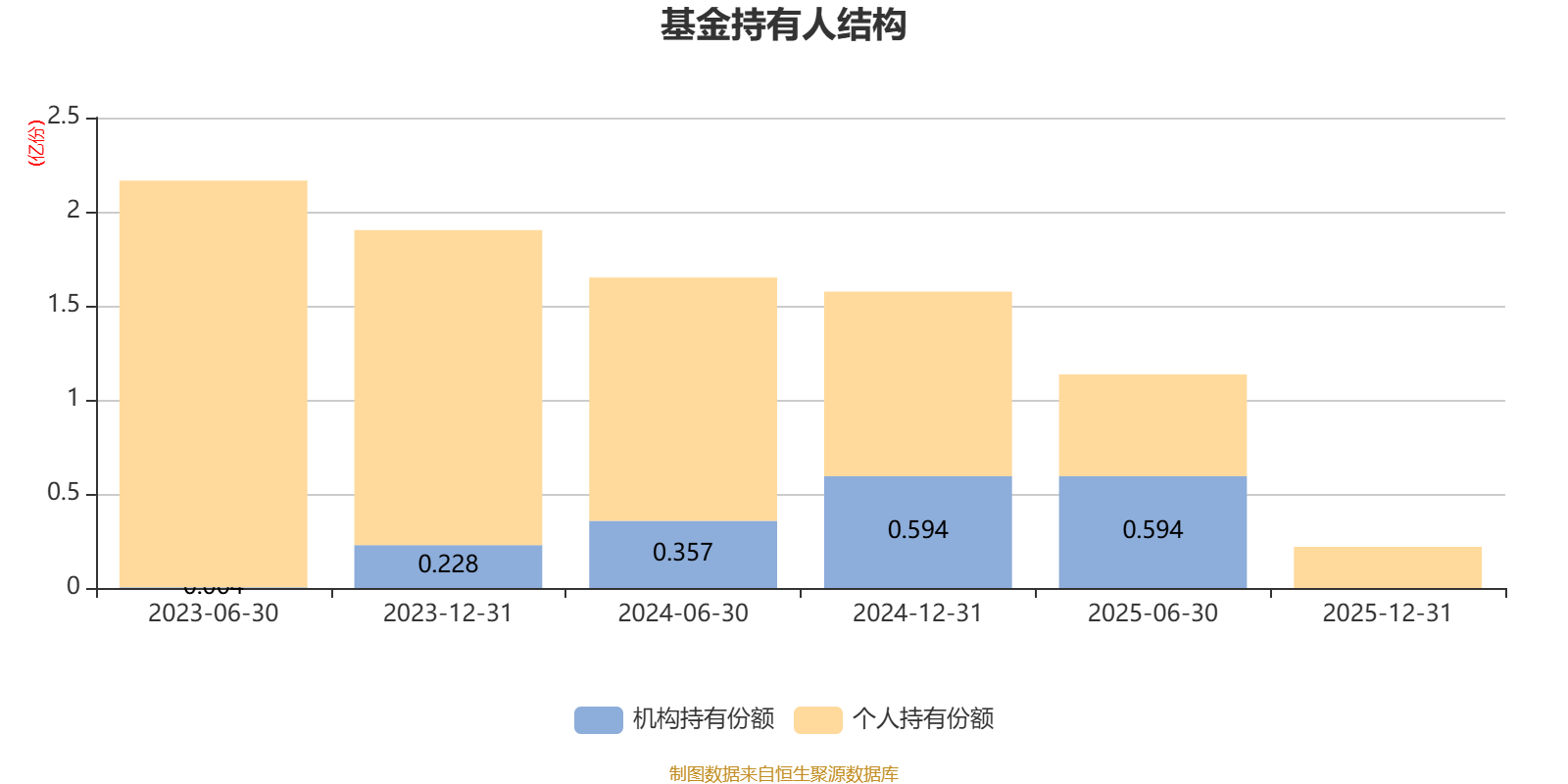 截至2025年12月31日,基金持有人共计1148户,合计持有2194.45万份。其中管理人员工持有35.53万份,占比1.62%,个人投资者占比100.00%。