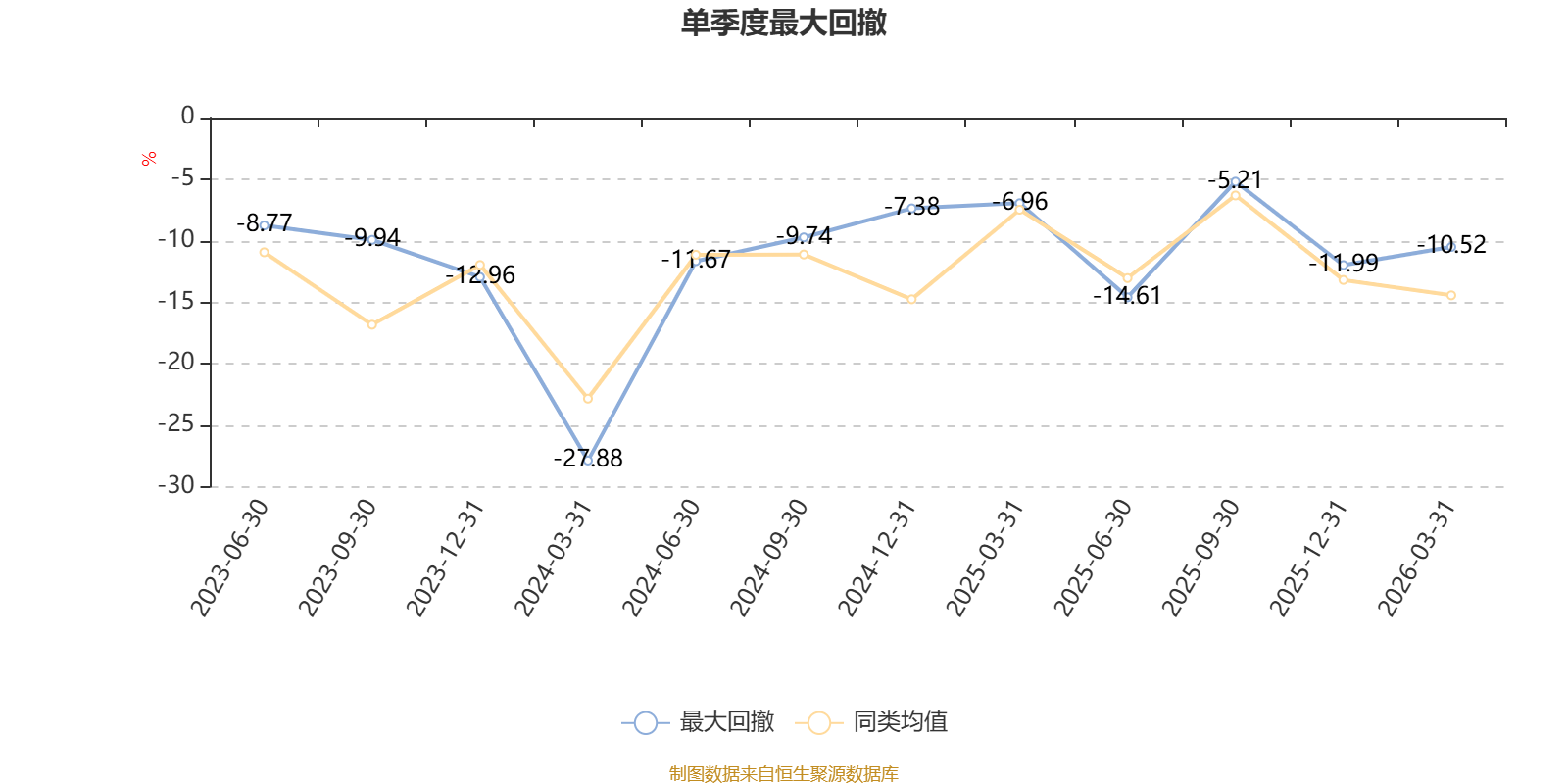 截至4月10日,基金近三年最大回撤为37.57%,同类可比基金排名31/72。单季度最大回撤出现在2024年一季度,为27.88%。