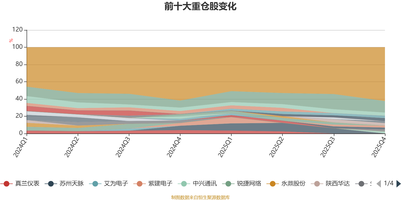 截至2025年末,基金十大重仓股分别是瑞芯微、安路科技、中际旭创、骏鼎达、中航高科、生益电子、中兴通讯、深南电路、多浦乐、矽电股份。