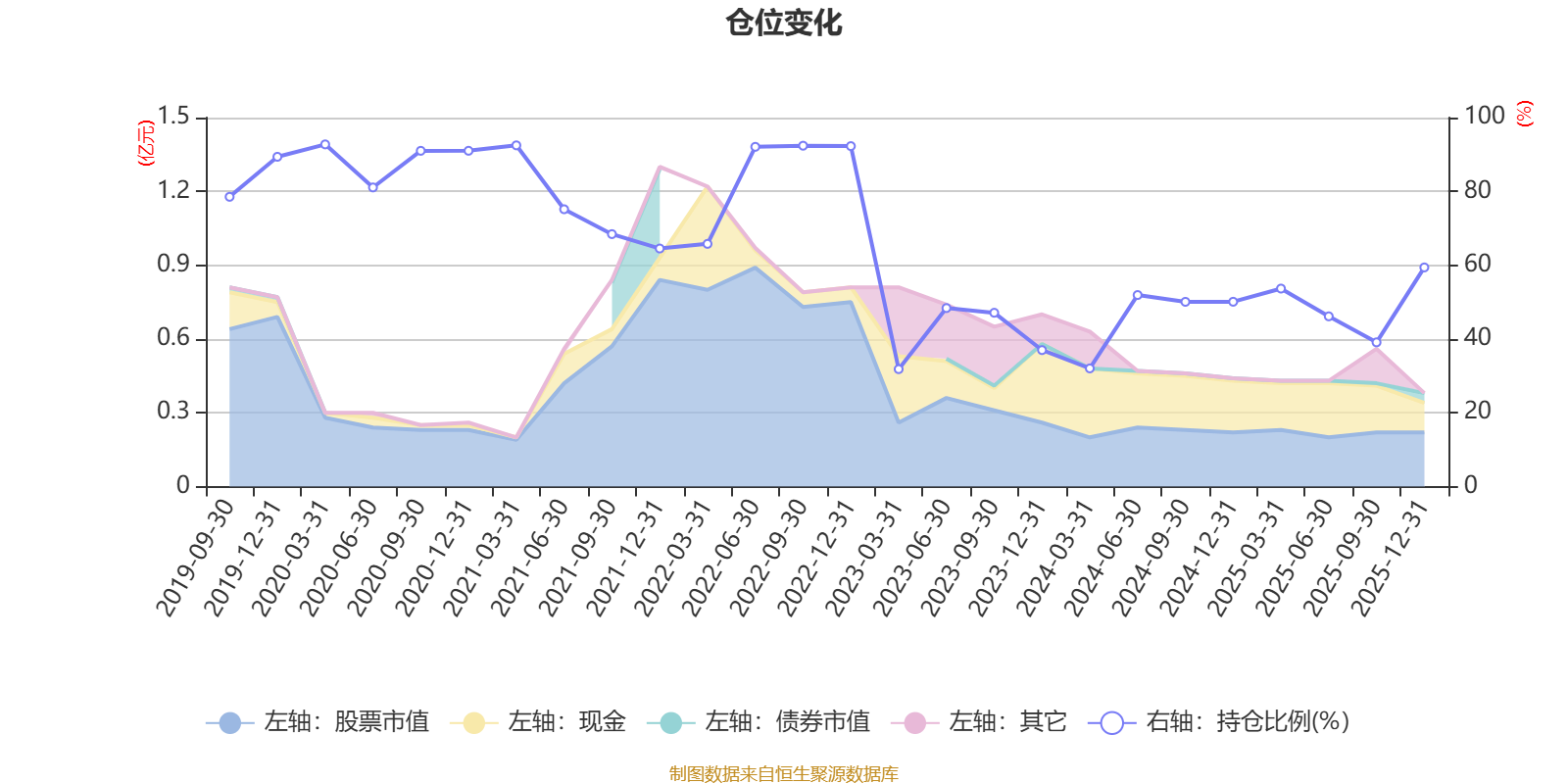 据定期报告数据统计,近三年平均股票仓位为45.56%,同类平均为72.57%。2020年一季度末基金达到92.74%的最高仓位,2023年一季度末最低,为31.83%。