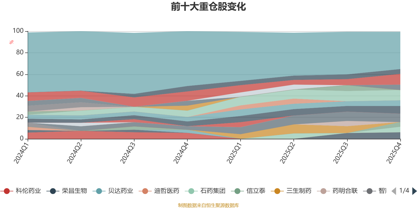 截至2025年末,基金十大重仓股分别是恒瑞医药、科伦博泰生物-B、信达生物、新诺威、荣昌生物、泽璟制药、石药集团、海思科、百利天恒、信立泰。