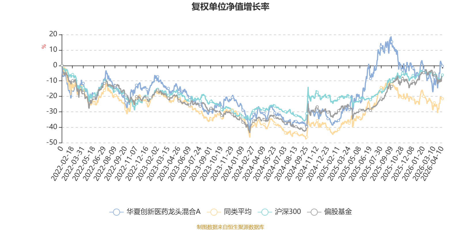 截至4月10日,华夏创新医药龙头混合A近三个月复权单位净值增长率为-2.83%,位于同类可比基金17/106;近半年复权单位净值增长率为-3.56%,位于同类可比基金31/106;近一年复权单位净值增长率为32.78%,位于同类可比基金26/104;近三年复权单位净值增长率为14.24%,位于同类可比基金18/78。
