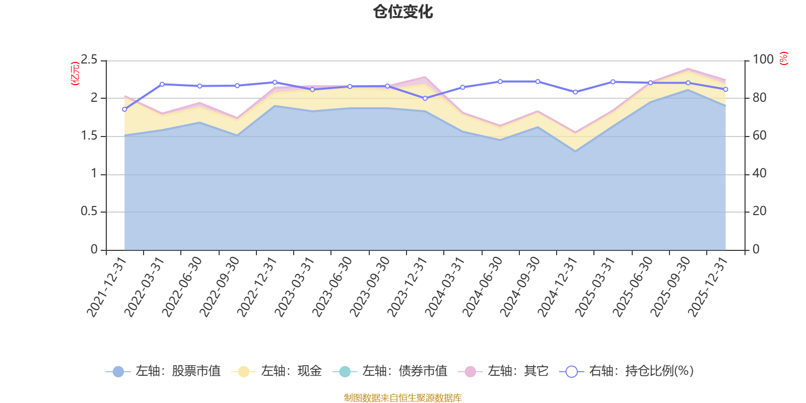 据定期报告数据统计,近三年平均股票仓位为86.2%,同类平均为86.7%。2024年三季度末基金达到88.89%的最高仓位,2021年末最低,为74.25%。