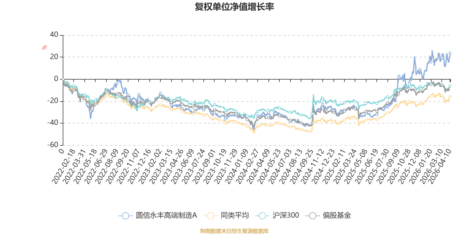截至4月10日,圆信永丰高端制造A近三个月复权单位净值增长率为8.01%,位于同类可比基金91/689;近半年复权单位净值增长率为24.58%,位于同类可比基金56/689;近一年复权单位净值增长率为83.79%,位于同类可比基金56/685;近三年复权单位净值增长率为60.84%,位于同类可比基金34/417。