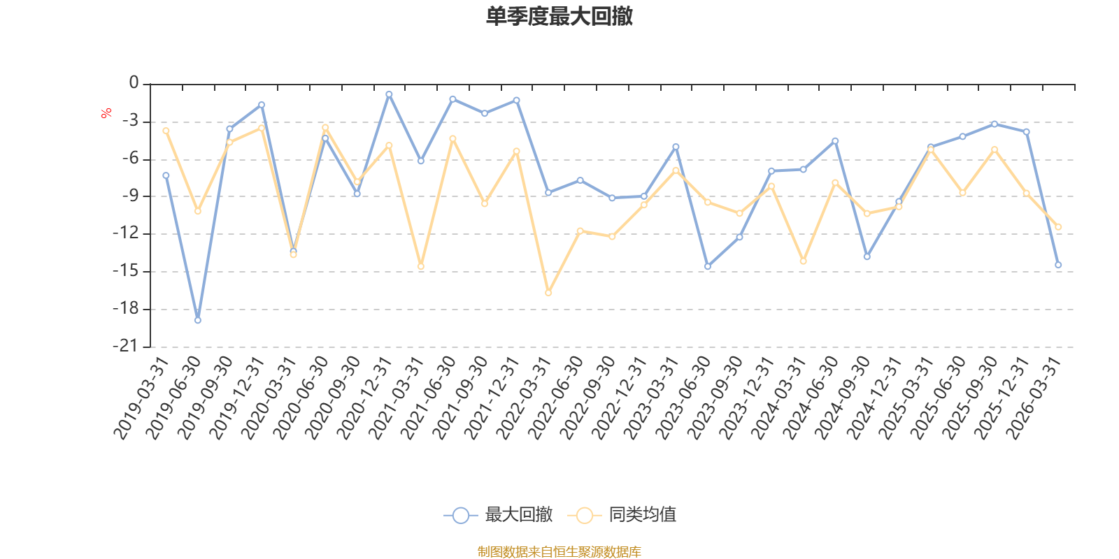 截至4月10日,基金近三年最大回撤为32.97%,同类可比基金排名741/1273。单季度最大回撤出现在2019年二季度,为18.87%。