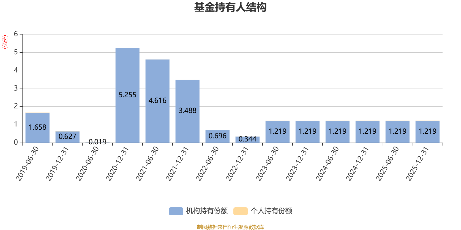 截至2025年12月31日,基金持有人共计425户,合计持有1.23亿份。其中管理人员工持有0份,机构持有份额占比99.46%,个人投资者占比0.54%。